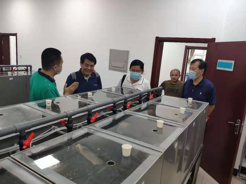 戴所长一行现场查看了已建成的经济鱼类全封闭循环水养殖系统、饲料及饲料原料理化性质检测中心和拟建设的30亩绿色智能养殖基地选址地,听取了研发中心建设细节、运转机制、工程进度及存在问题等方面的汇报,对研发中心的建设和运转工作给予肯定,表示研究所将进一步在政策、项目上大力支持研发中心的工作,现场办公布署了解决研发中心冬季采暖、食堂配置等问题的解决思路、实施方案和实施步骤。戴所长同时还强调,研发中心要加强安全生产工作,加强隐患排查治理,落实安全责任,确保科研安全、人员安全、环境安全。